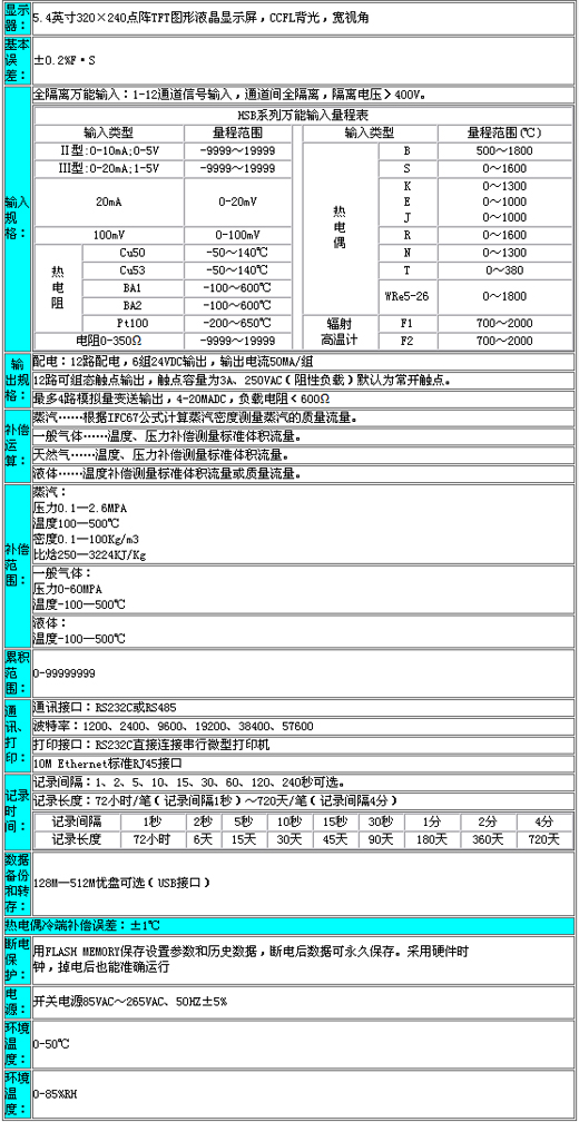 ◆4路温压补偿,支持补偿信号输入,常数可选,提供多种补偿模型,如过热蒸汽,饱和蒸汽,压力补偿等常用补偿模型;