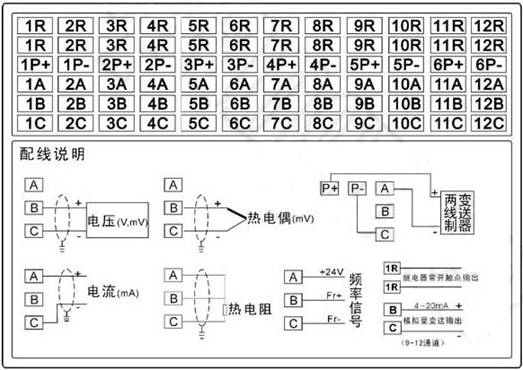 ◆可输入各种标准信号,FR、20MA、5V、S、B、K、T、E、J、R、N、Pt100、Cu50、Cu53、BA1、BA2、350Ω、20MV、100MV、10MA、WRe、F1、F2;